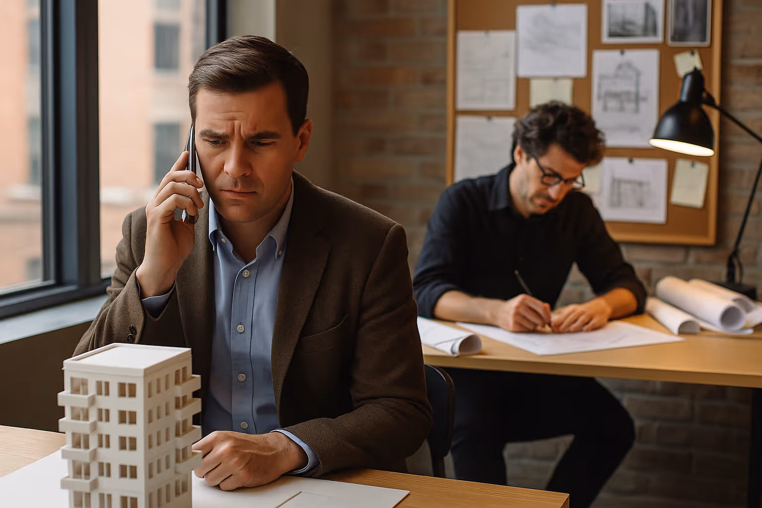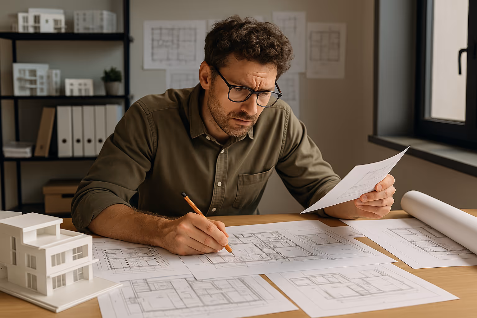 Architects juggle multiple jobs, so your work waits in line. What could take days stretches into weeks before you see first drawings.